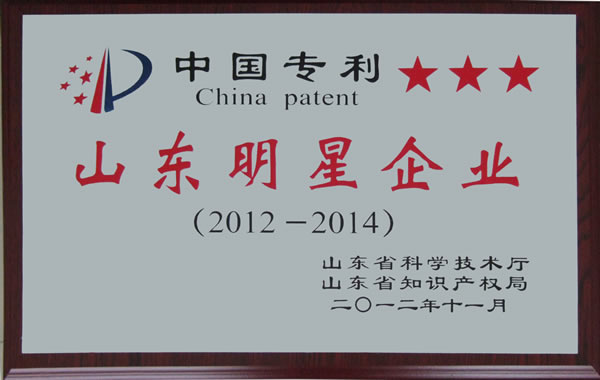 近期,据山东省科学技术厅、山东省知识产权局鲁知管字【2012】68号文件通告,我集团公司再次被评为三星级中国专利山东明星企业,并获颁发奖牌和证书。