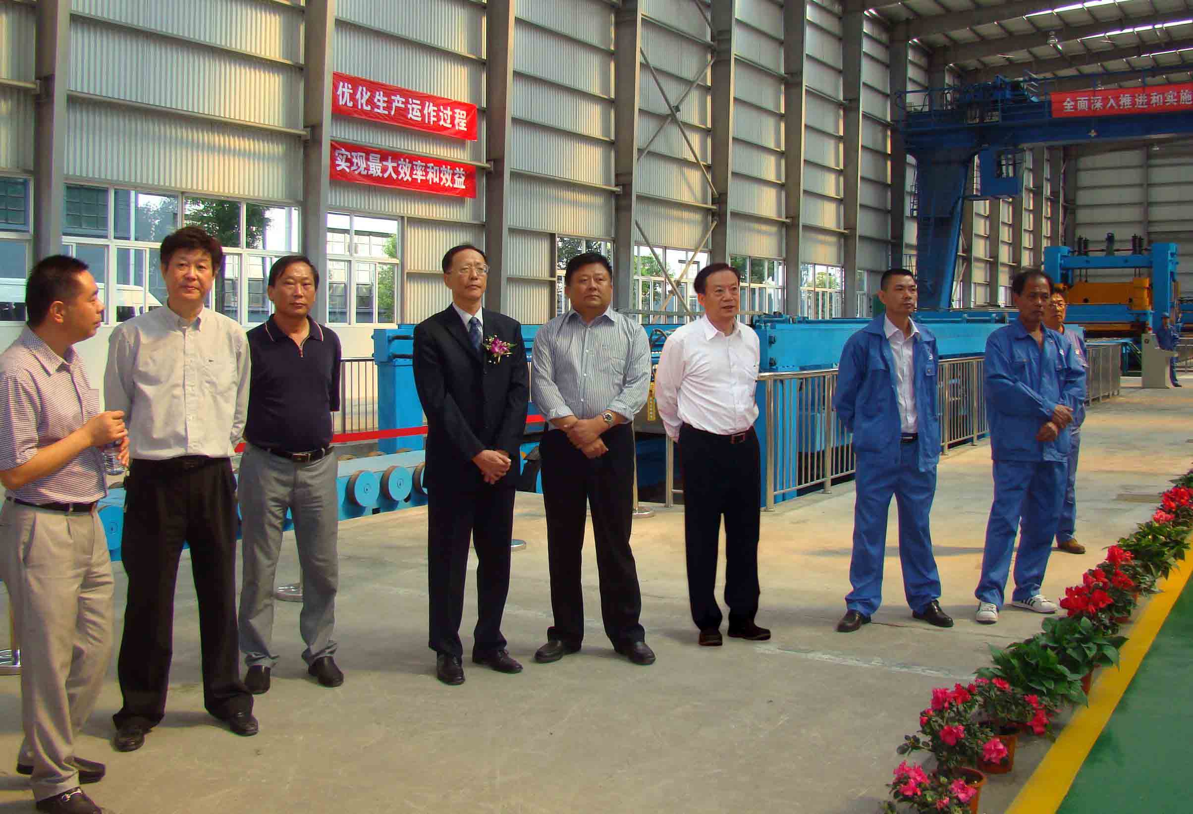 10月11日,康总、朱洪军副总一行参加了“上海物资贸易股份有限公司黑色金属分公司技改项目竣工庆典仪式。”上海市区各级领导、来自全国各地新老客户参加了庆典仪式。上海物资贸易股份有限公司黑色金属分公司技改项目,是从宏康集团购进一条3~12×2000MM热轧钢卷纵剪分条机组、一条5~25.4×3000MM的热轧开卷矫平横切生产线,其中5~25.4×3000MM的热轧开卷矫平横切生产线是目前国内唯一能开矫剪切3000MM超宽热卷的机组。